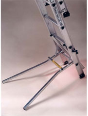 • Increases the effective base of the ladder by forming a much larger trapezium- shaped base than with just the ladder itself. This gives more sideways stability.